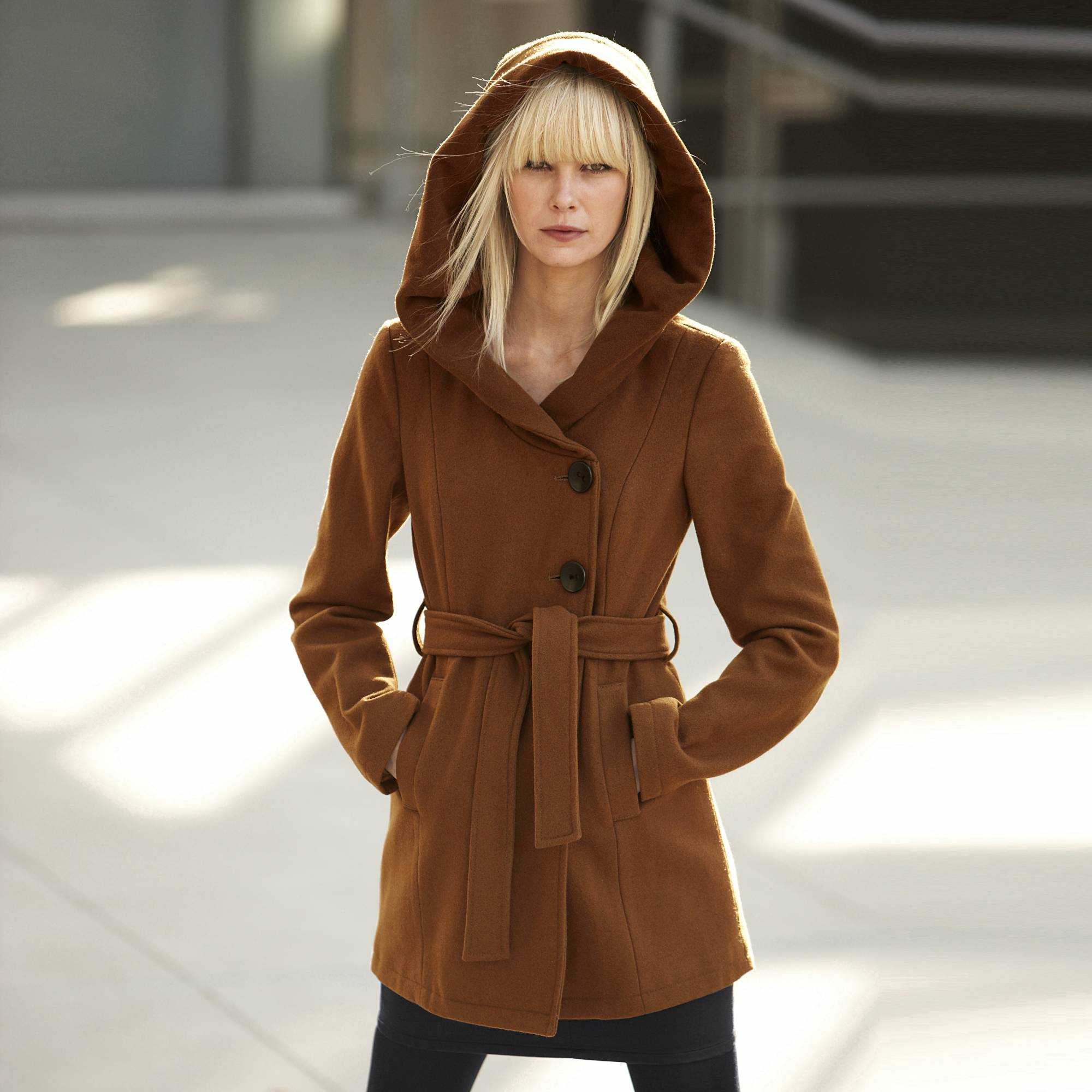 Стильный воротник на пальто всегда смотрится красиво и привлекательно. Он добавляет образу элегантности и определённой строгости. Капюшон создаёт более молодёжный, игривый тон. Однако с таким аксессуаром зачастую становится более комфортно. Если есть возможность, нужно брать модель, которая имеет отстёгивающийся капюшон. Так его всегда можно будет пристегнуть к изделию в нужный момент.
