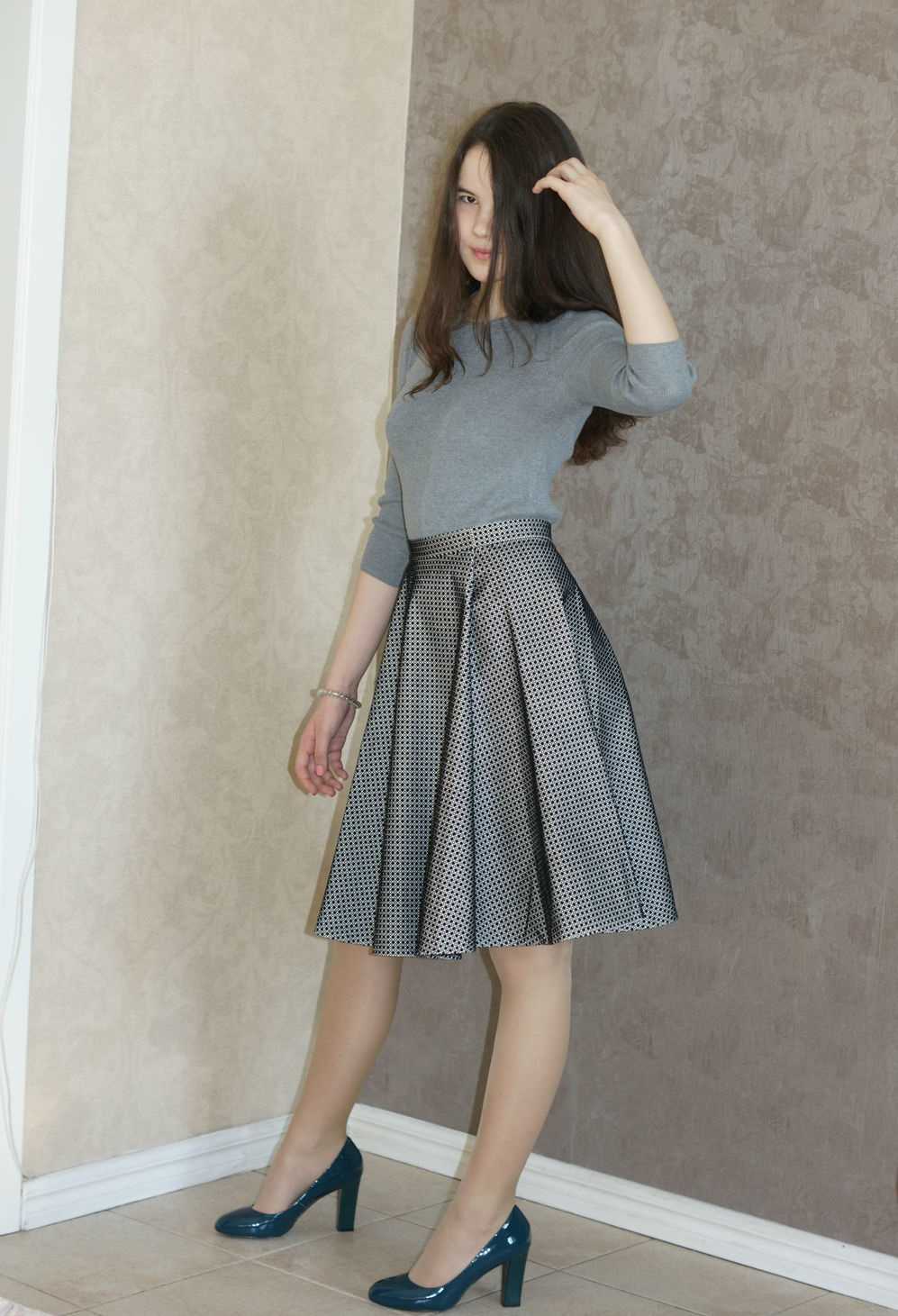 Если юбка-полусолнце обладает длиной мини, блузка в этом образе должна быть спокойной без кричащих вырезов и лишнего демонстрирования тела.