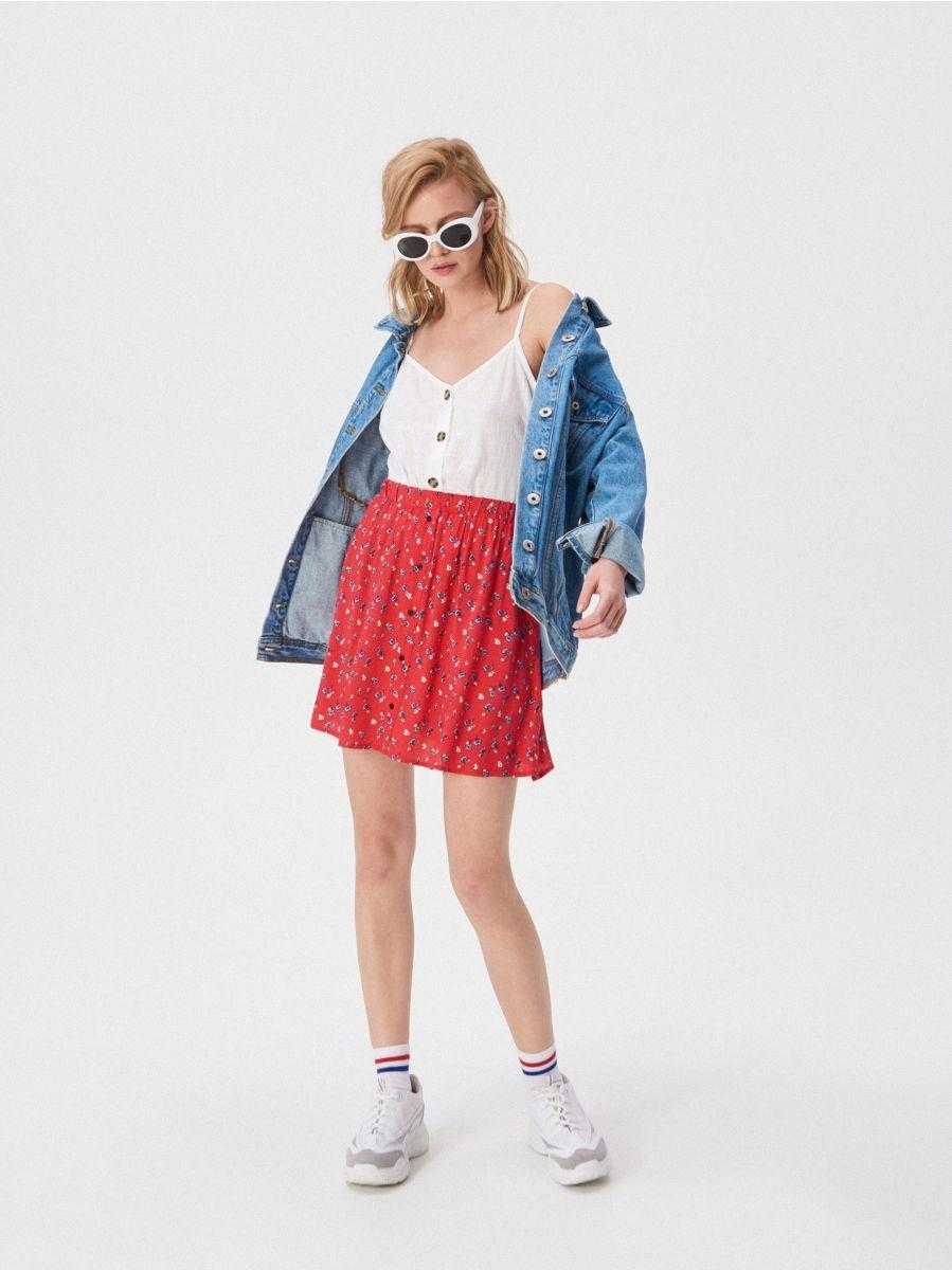 Несколько вариантов комбинирования юбки-полусолнце короткой длины: