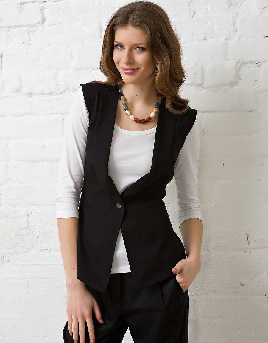 Традиционные жилеты, являясь прямыми репликациями мужских моделей, вносят брутальную нотку в современные женские деловые ансамбли, создавая интересный контраст с облегающими фигуру юбками и классической обувью, которые призваны подчеркнуть женственность силуэта.