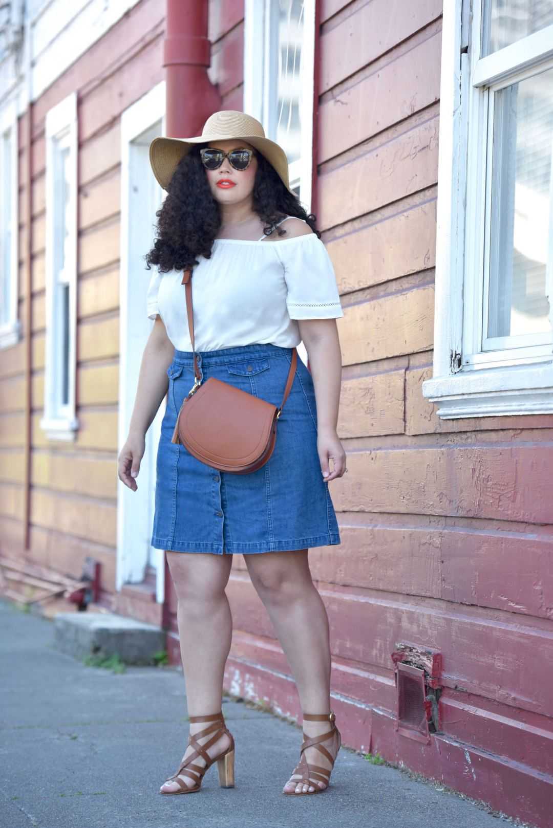 Джинсовые юбки в модных коллекциях этого года представлены моделями самых разнообразных вариантов, но на пышечках лучше всего смотрятся фасоны «карандаш», «годе» и «трапеция». Длина изделия может быть как средней, чуть выше колена, до половины икры и в пол.