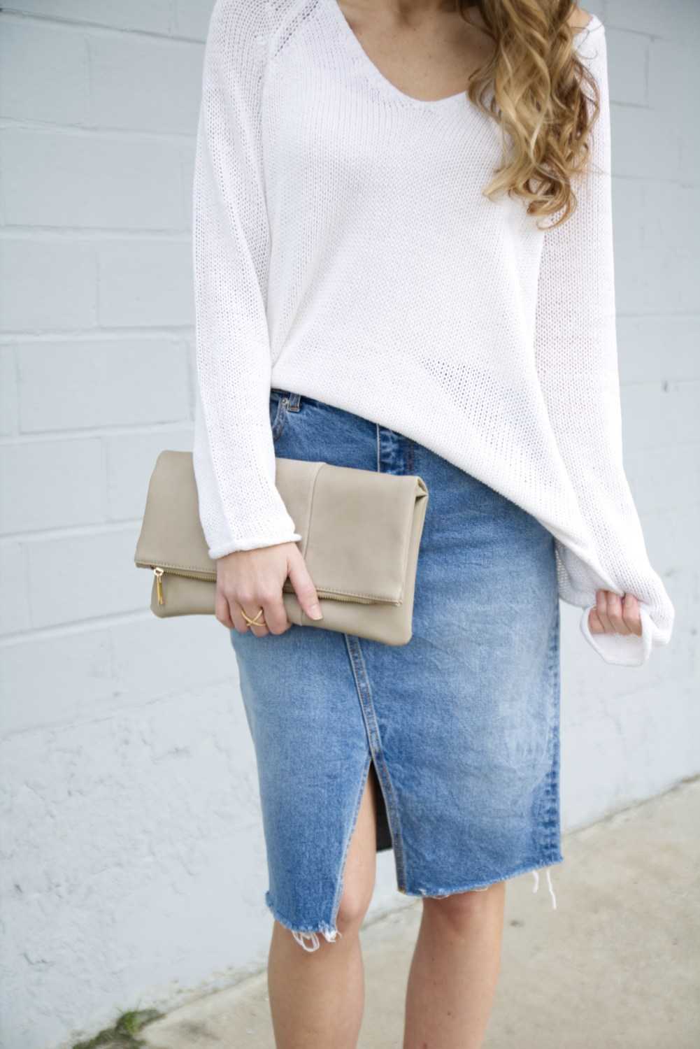 Выберите выцветшую или изношенную джинсовую юбку для чего-то неформального