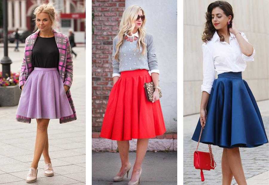 мини. Короткая расклешенная юбка идеально подходит для создания повседневных луков. В такой одежде можно смело отправиться на прогулку и даже на пикник. Правда. На официальных мероприятиях короткие юбки неуместны. Они должны быть минимум по колено;