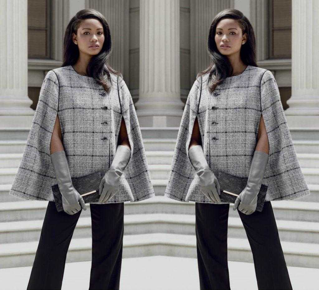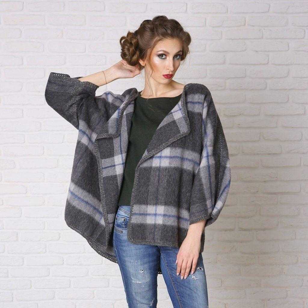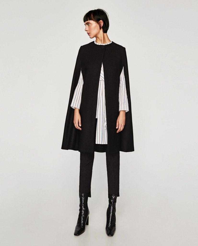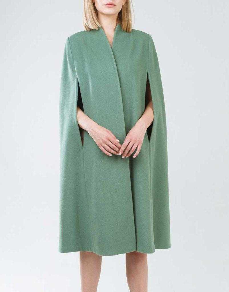 Стильные модницы давно полюбили Кейп. Это пальто-накидка с прорезью для рук без рукавов, впереди на пуговицах или без. Оно элегантно дополняет образ, делая его модным и нетривиальным. Такая вещь хорошо сочетается с обтягивающим низом. И обязательно обувь на каблуке, так силуэт будет визуально изящнее.