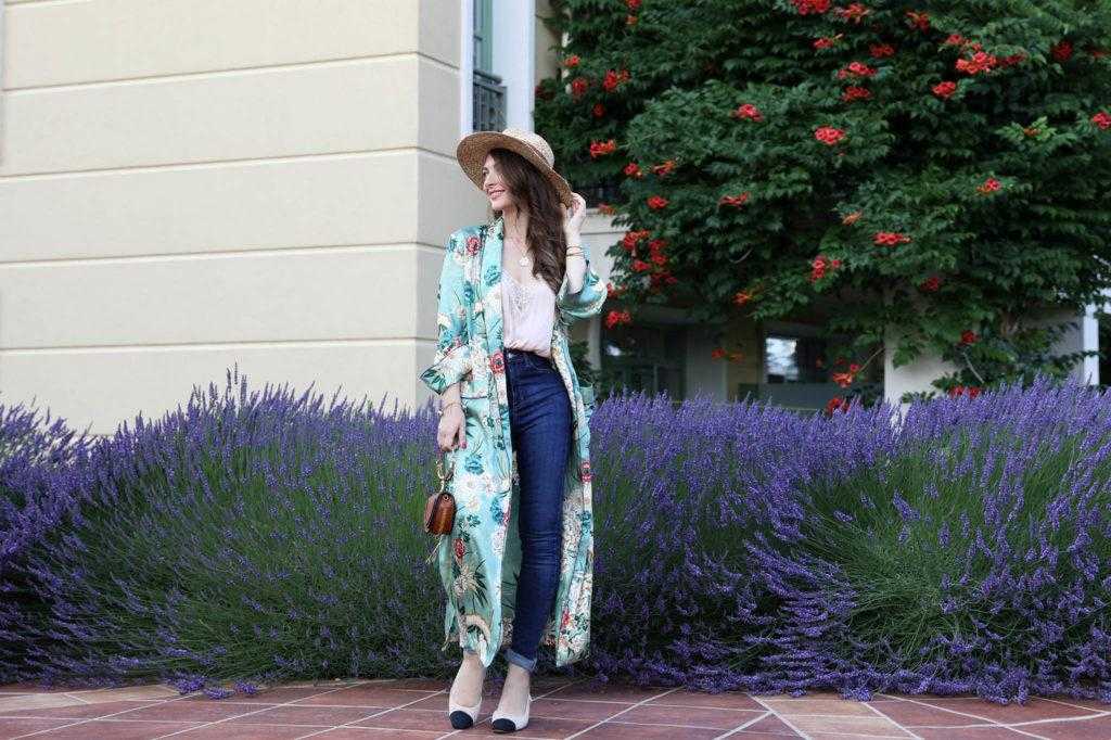 Длинное кимоно вещь самодостаточная и не требует дополнений. Носить можно как платье, на запах повязав на талии пояс, в тон накидки чтоб не нарушать гармонию образа.