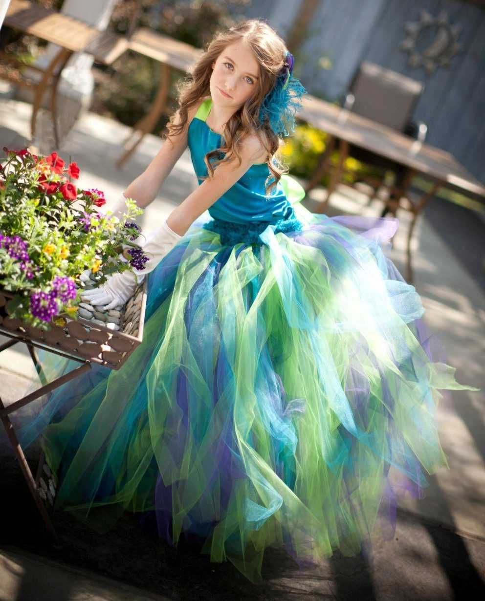 Какими бывают нарядные детские платья из фатина? Разнообразные модели можно увидеть на фото, это: