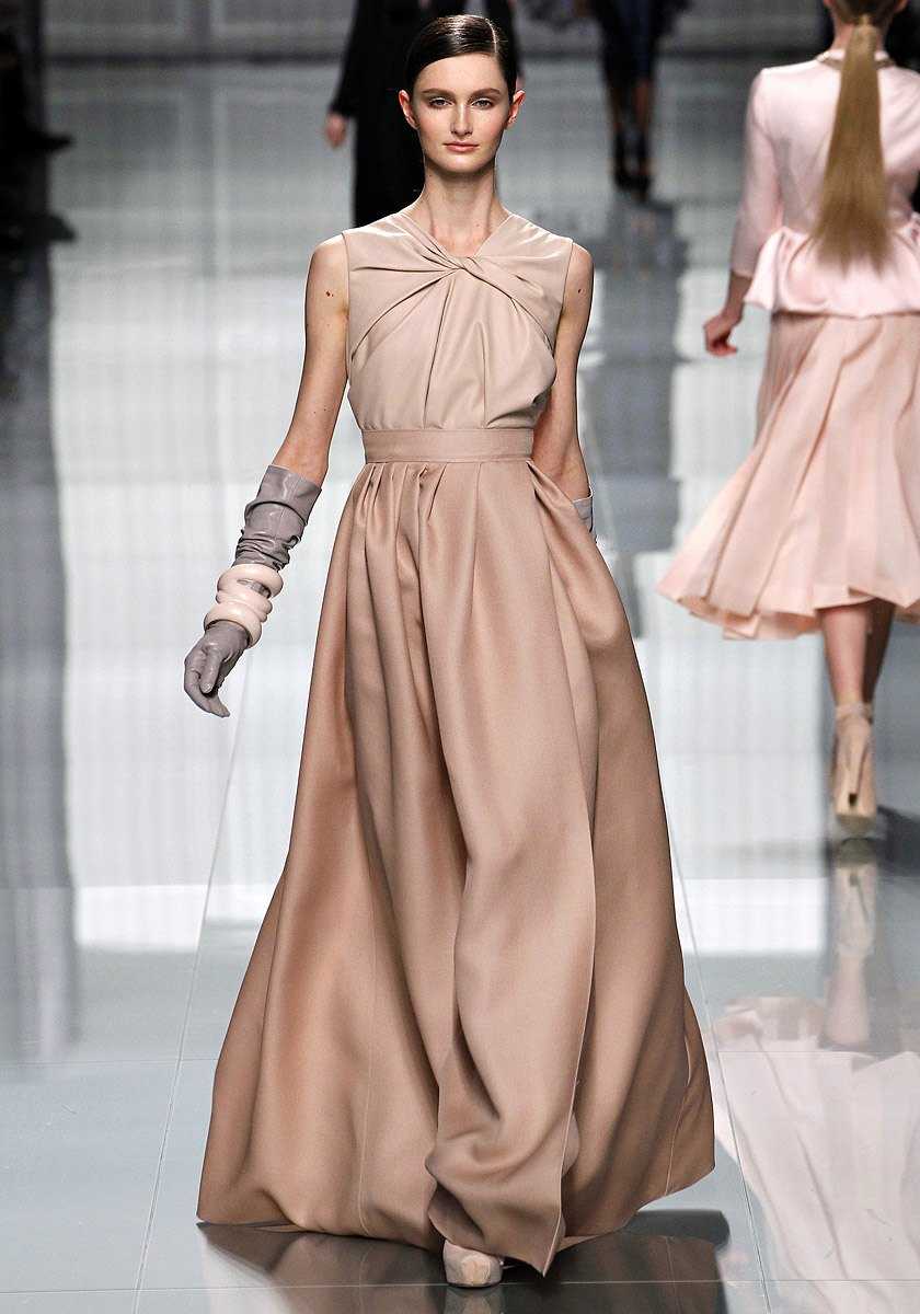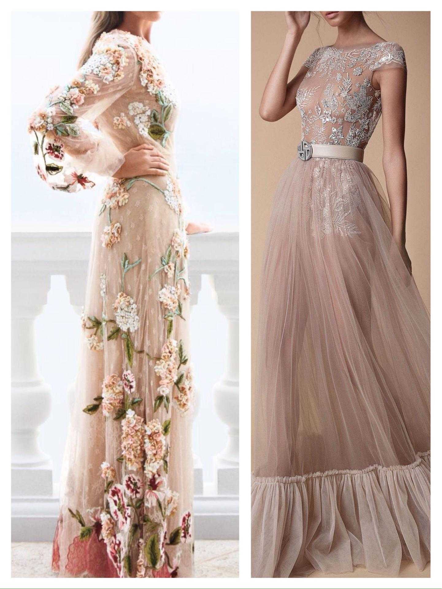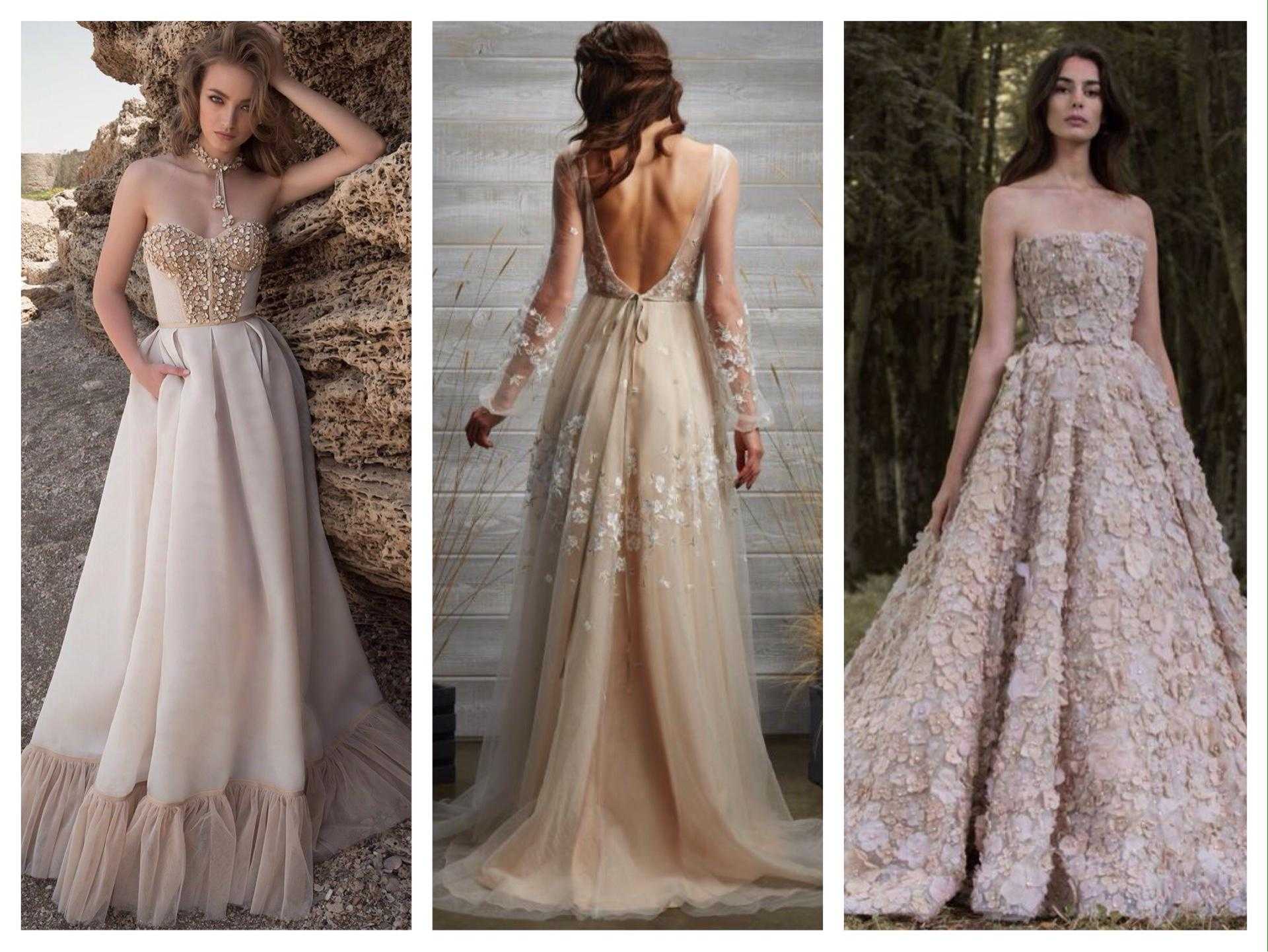 Светлые телесные оттенки будто созданы для вечерних открытых платьев. Для изготовления одежды используется кружевное полотно, шелк, струящийся текстиль, отделка кружевом, бисером, пайетками, вышивкой. Таким образом наряды получаются романтичными, трогательно-нежными и вызывают неподдельный интерес мужчин к созданному образу, самой женщине. Яркий пример .