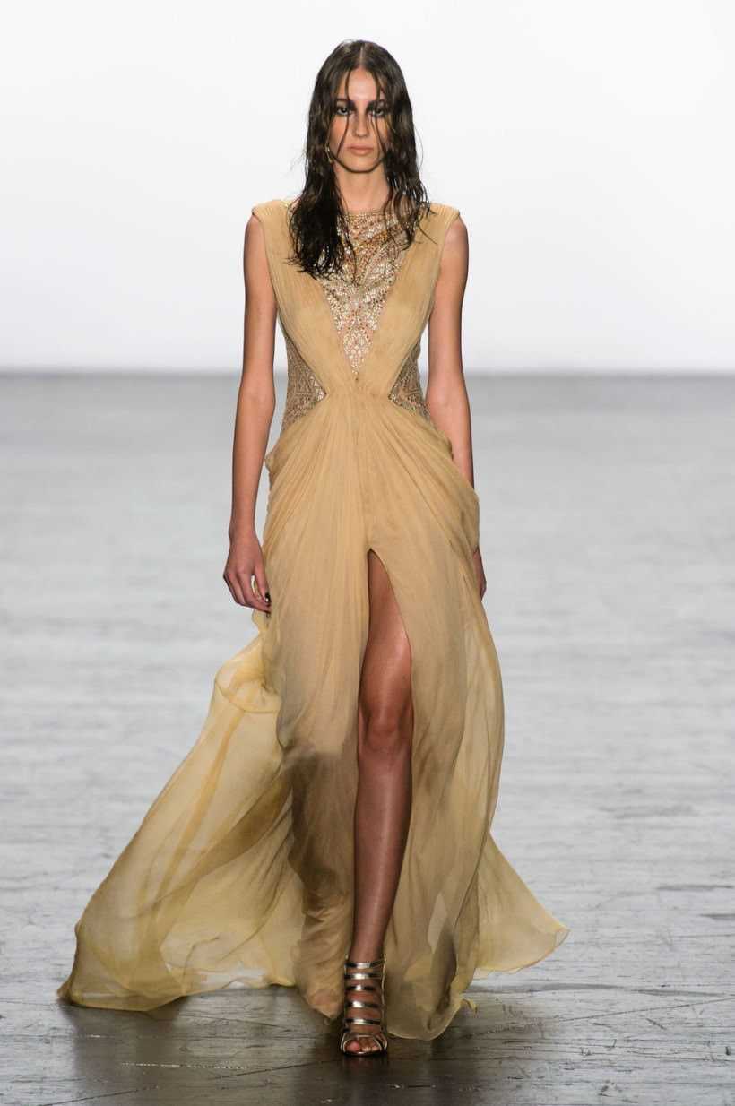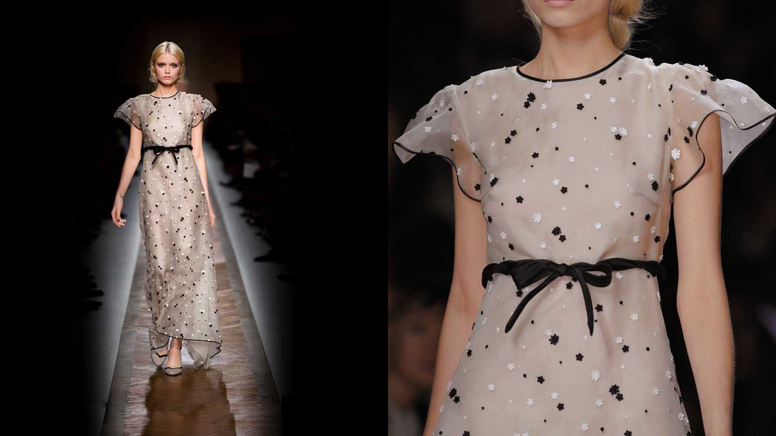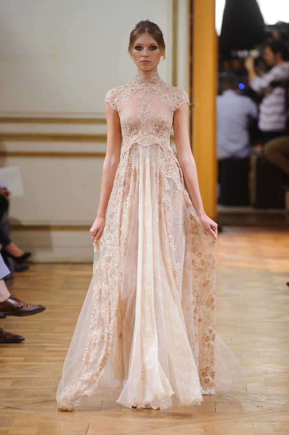 Светлые телесные оттенки будто созданы для вечерних открытых платьев. Для изготовления одежды используется кружевное полотно, шелк, струящийся текстиль, отделка кружевом, бисером, пайетками, вышивкой. Таким образом наряды получаются романтичными, трогательно-нежными и вызывают неподдельный интерес мужчин к созданному образу, самой женщине. Яркий пример .