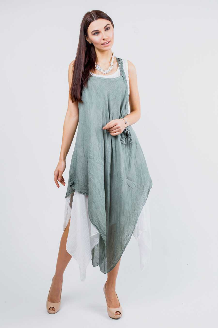 Традиционно, платье изготавливают из легкого, струящегося материала, например шелка или шифона. Но летом 2021 года, модные дизайнеры, рекомендуют носить женщинам такой фасон платья именно из льна!