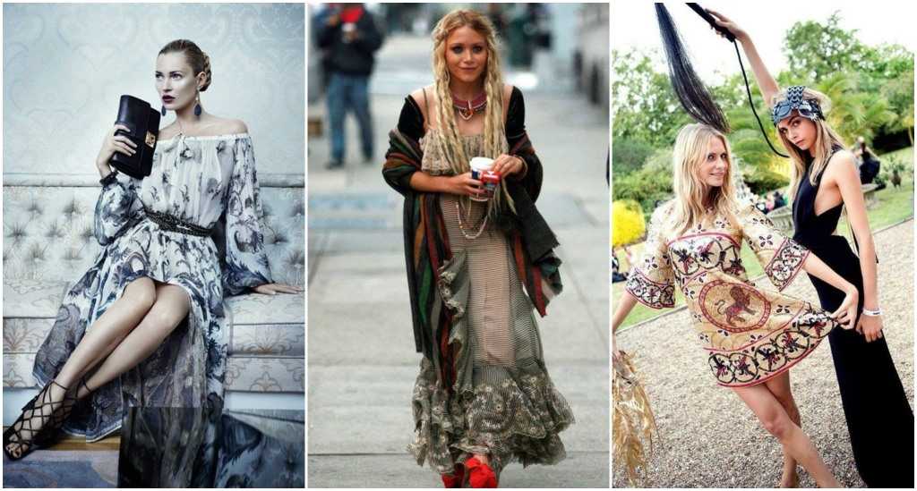 Цвета — как яркие, так и спокойные. Главное, чтоб их подарила матушка-природа, а не использовалось все это неоновое кислотное сумасшествие. Что еще поможет представить себе одежду этого свободолюбивого стиля — цыгане, хиппи, Джон Леннон, а лучше — когда это все вместе. Аутентичное направление, ранее в истоках сочетавшее аристократическую роскошь с небрежностью, одним словом, богема.