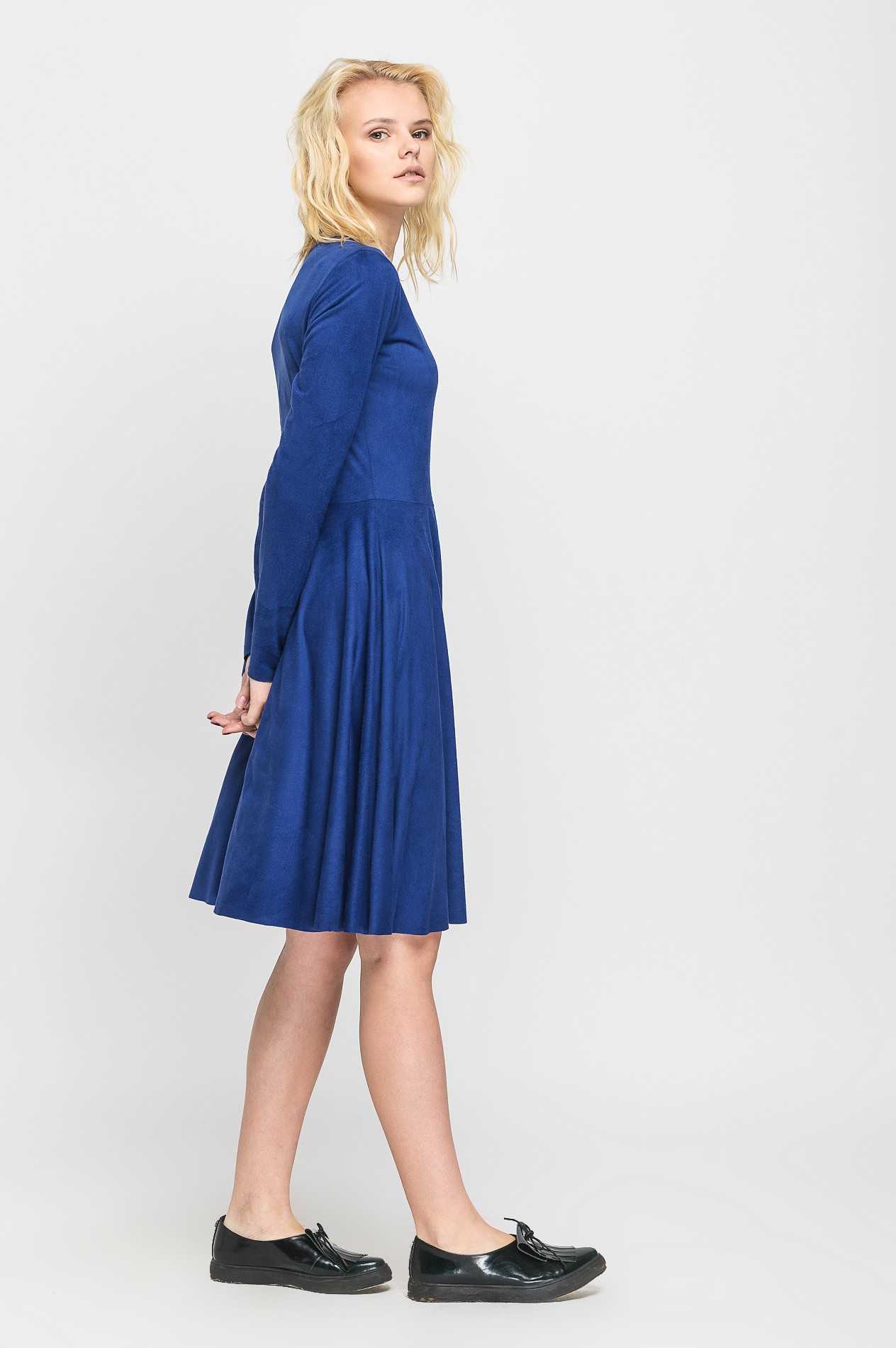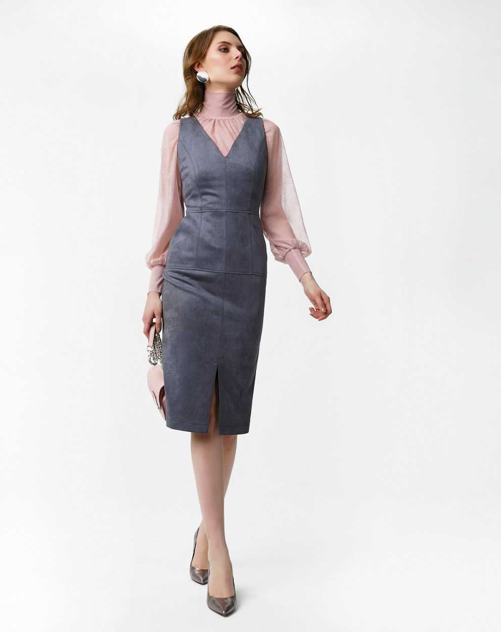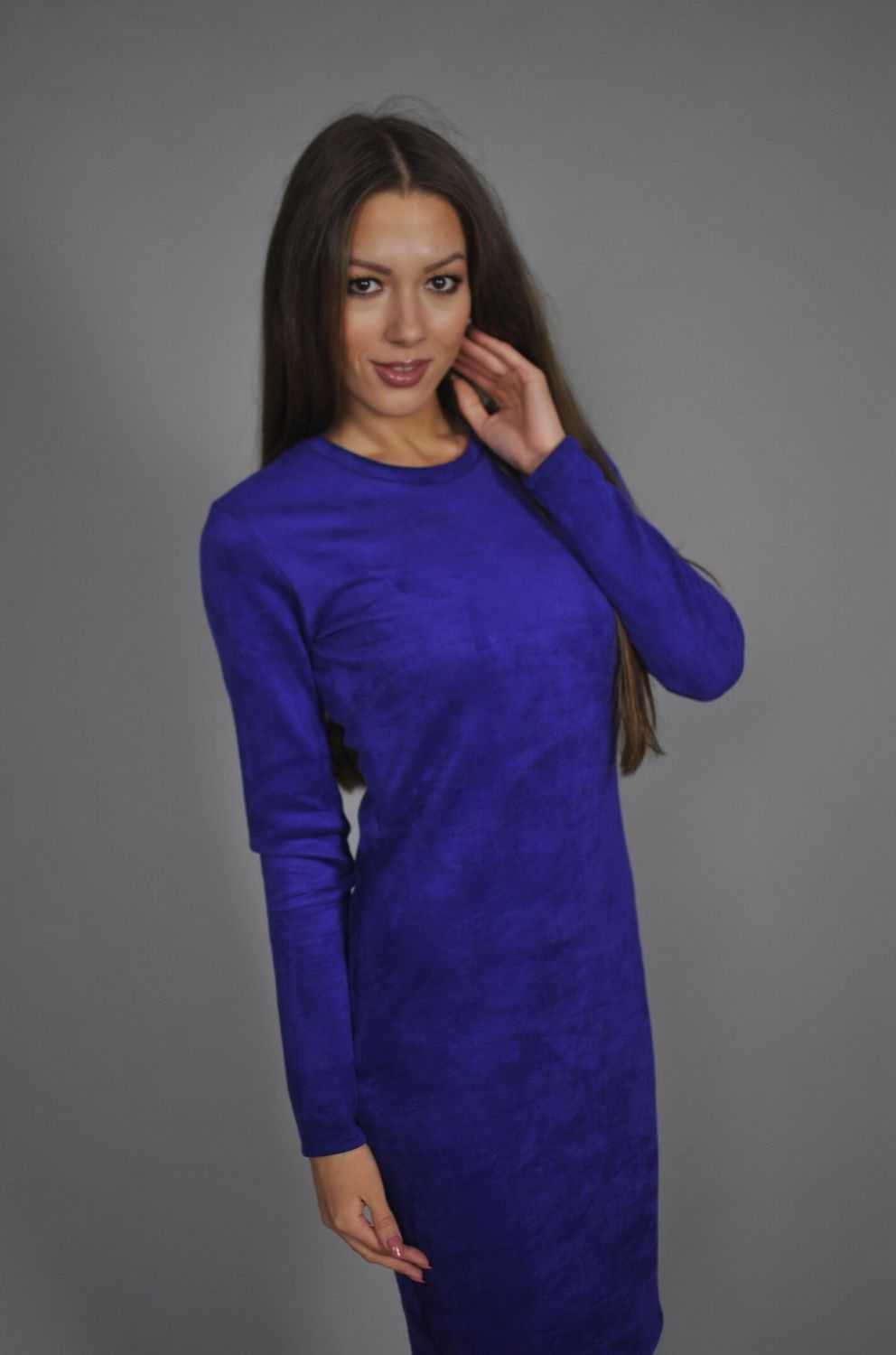 Истинные ценительницы универсальности не оставят без внимания синее, серое платье из замши. Изделия в этих цветах придадут изделию элегантность и нотку строгости
