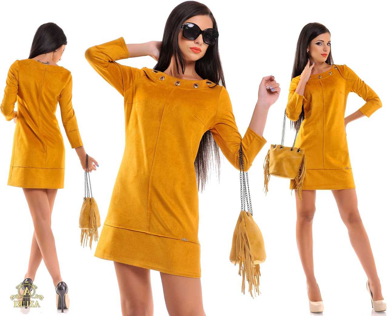 Фото фасонов платья из замши упрощают женщинам задачу по выбору актуальных вариантов. Приталенные модели шикарно вписываются в спортивный стиль. Особенности материала и обманчивая простота фасона гармонично соединяются с короткой длиной, отделками, вставками из других материалов.