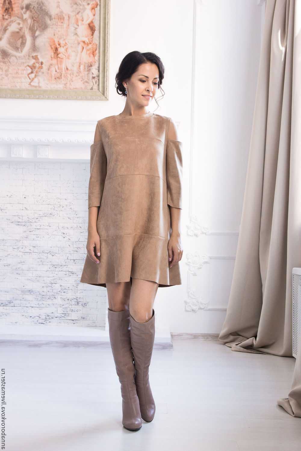 Независимо от типа фигуры, платье-трапеция из замши дополнит аутфит женственностью, спрячет все недостатки тела. Универсальность фасона делает его чрезвычайно популярным среди современных модниц – он подходит под любую фигуру, не сковывает движений, его можно сочетать с разной обувью, что помогает изменять стилистическое направление лука.