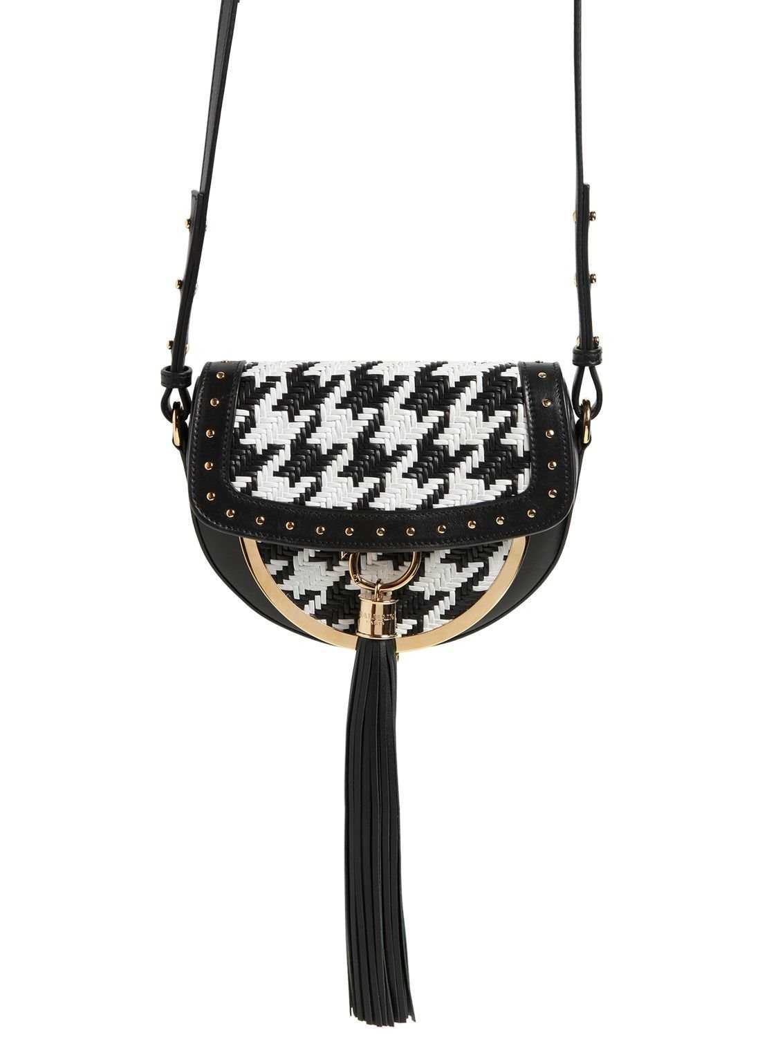 Яркие вставки на сумке можно сочетать с другими аксессуарами с «гусиной лапкой»: перчатками, шарфом или обувью.