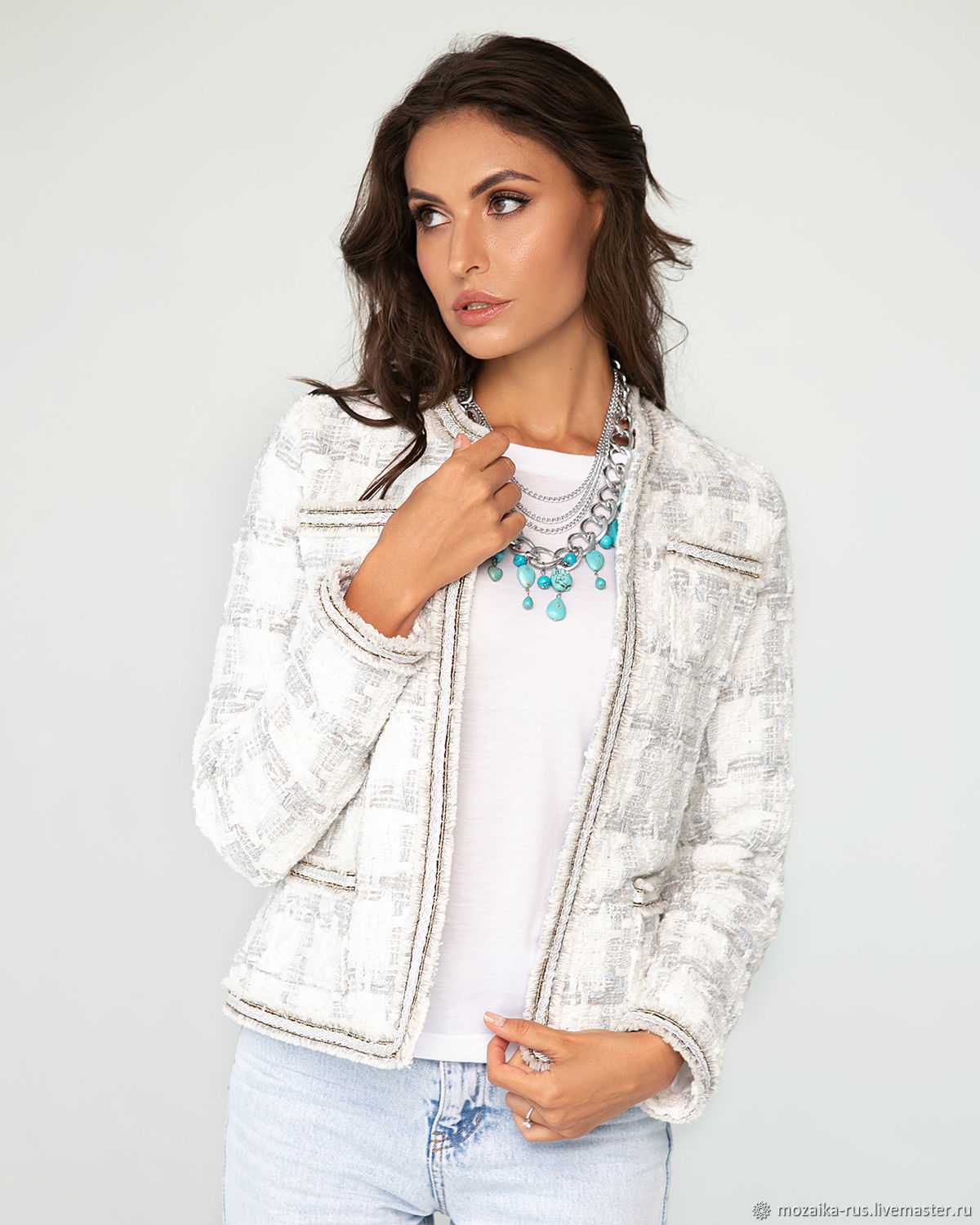 Это интересно! Долгое время для производства жакетов использовалась исключительно твидовая ткань. А все изделия отшивались вручную.