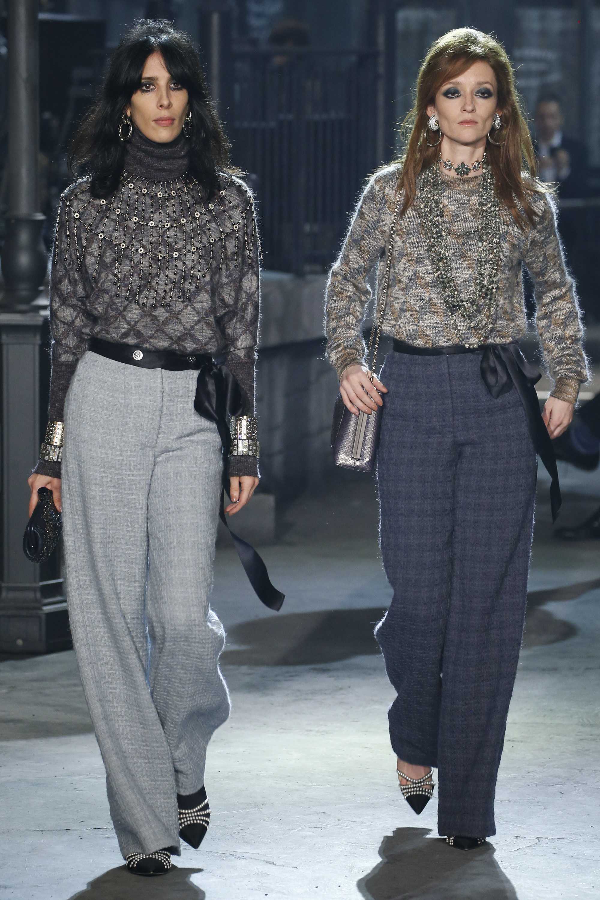 Знаменитые вечерние широкие брюки, позднее прославленные Марлен Дитрих. Благодаря брюкам, девушки смогли удобно сидеть и быстро передвигаться. Сама Шанель предпочитала дневные укороченные брюки, которые прекрасно сочетались с классическими дорогостоящими свитерами