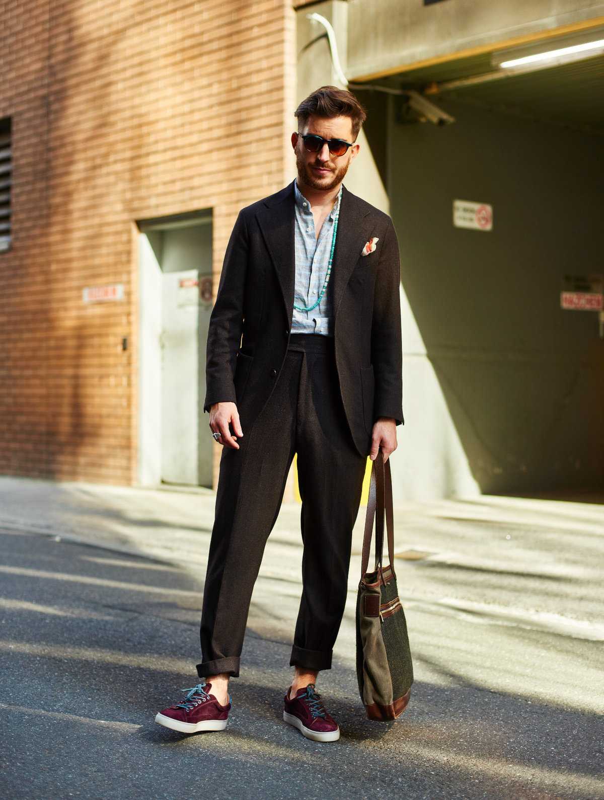 - Какая обувь подойдет: замшевые классические дерби, топ-сайдеры, ботинки чукка, кроссовки, кеды…