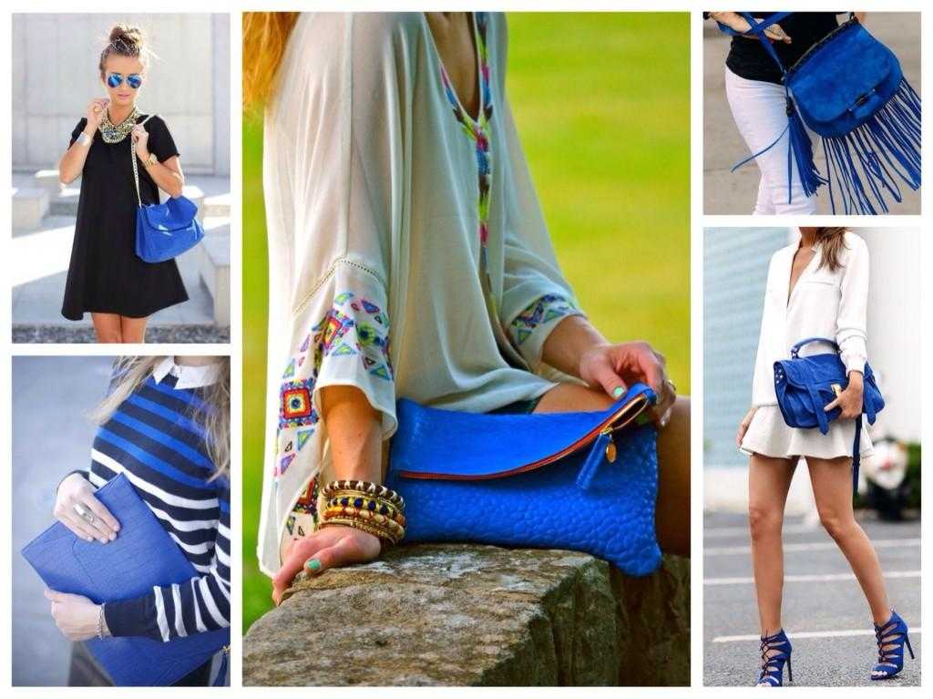 Кобальтовая сумка украсит наряд, в котором уже присутствует этот колор в одном из элементов одежды.