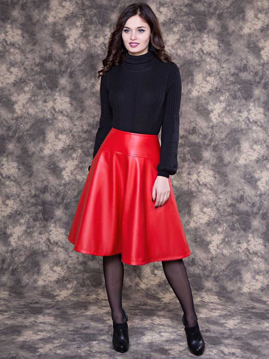 Еще одна универсальная разновидность кожаной юбки — трапеция. Подходит всем: юным девочкам, молодым девушкам, зрелым женщинам