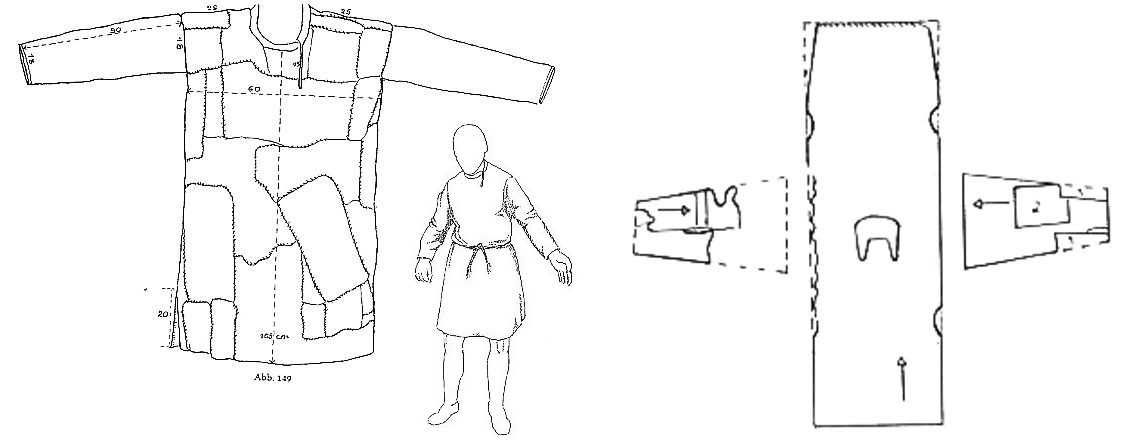 Такой архаичный крой представляется наиболее простым и не требующим дополнительной работы с источниками на конкретный регион. В то же время имеются и другие варианты, например в Хедебю. Однако поскольку возможность их использования зависит от конкретного комплекта и, опять же, требуется дополнительное обоснование, данные варианты в нашем мануале не рассматриваются.