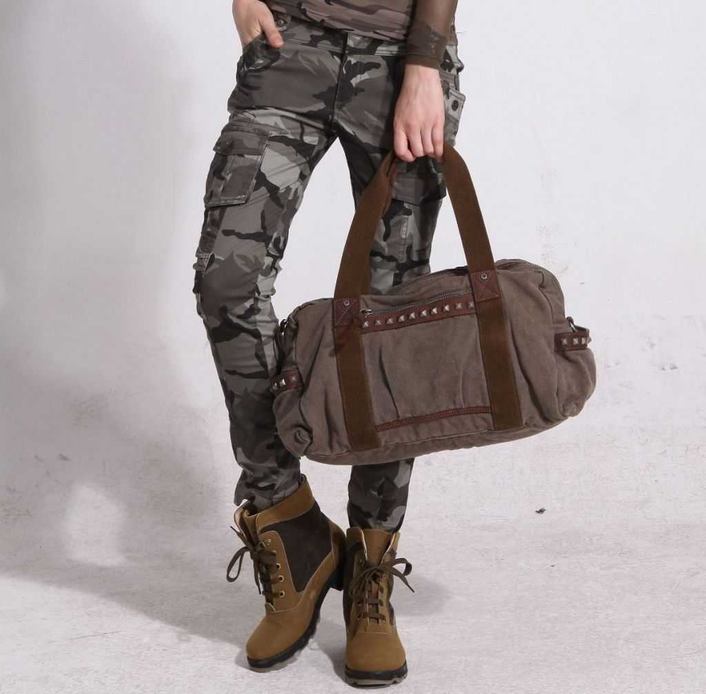 Дополнения – белые и камуфляжные футболки, свитера, черные или защитные пуловеры, толстовки. Головные уборы – фуражка, бейсболка, берет. Обувь – берцы, высокие сапоги, коричневые или серые ботинки, кеды, кроссовки. Сумки – объемные, почтальонки, рюкзаки.