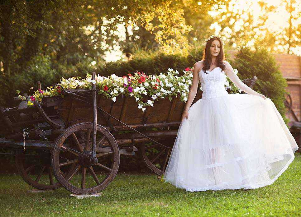 Проанализировав фото, можно выделить такие разновидности свадебных нарядов в деревенском стиле: