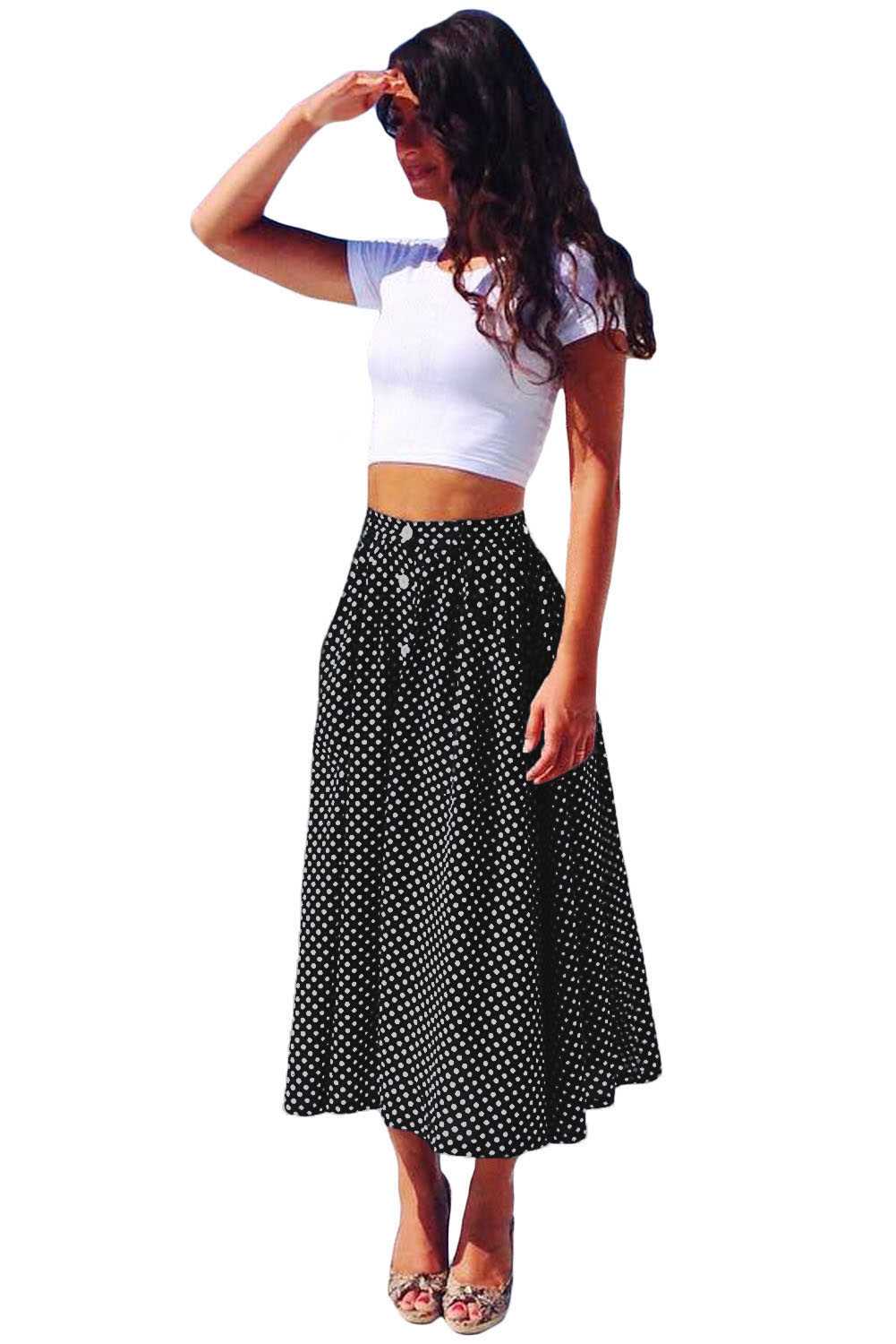 Слушать голос модных тенденций легко просматривая модные блоги девушек плюс сайз или фото в инстаграм. Дизайнеры работают над тем, чтобы образ был элегантным и запоминающимся. Если вы желаете шикарных результатов в работе над собственным стилем. Выбирайте юбки с заметным рисунком. Как например модели из ткани в горох.