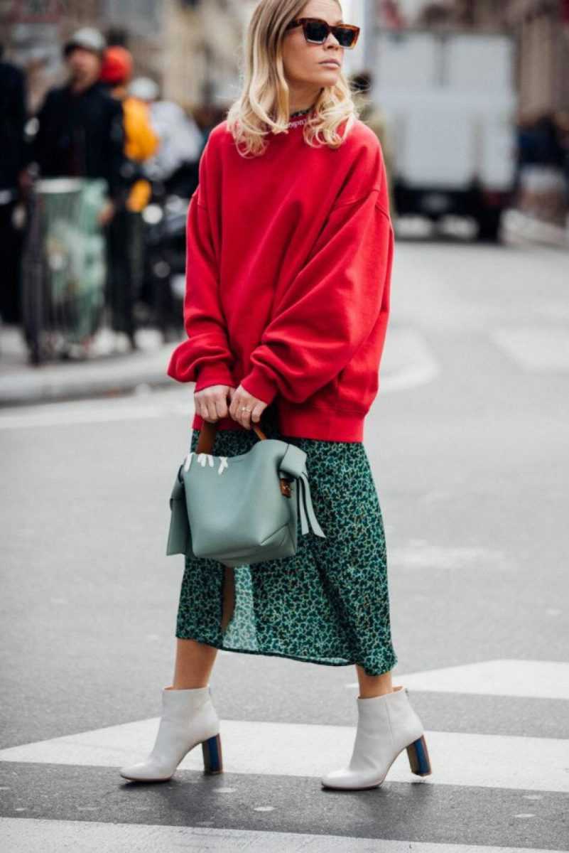 Если к серой юбке мы надеваем строгий черный верх, то особое внимание нужно уделить деталям: акценты в виде яркой сумки, пальто с яркими деталями, обувь, украшения — все должно придавать строгому образу смелость и эффектность. Красный цвет здесь весьма кстати