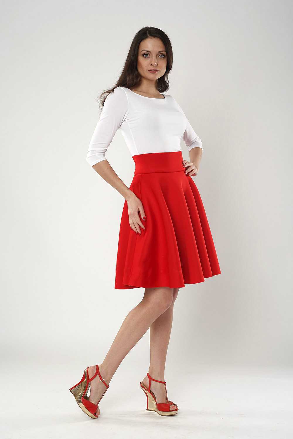 Даже в сочетании с блузкой или топом и жакетом белого, черного или белого цвета она будет привлекать к вашему образу излишнее внимание. Но если именно это и является вашей целью, то интересным вариантом также может быть сочетание красной юбки с ярким серебристым или золотистым топом, трикотажной тельняшкой, нежно-голубой или темно-зеленой рубашкой