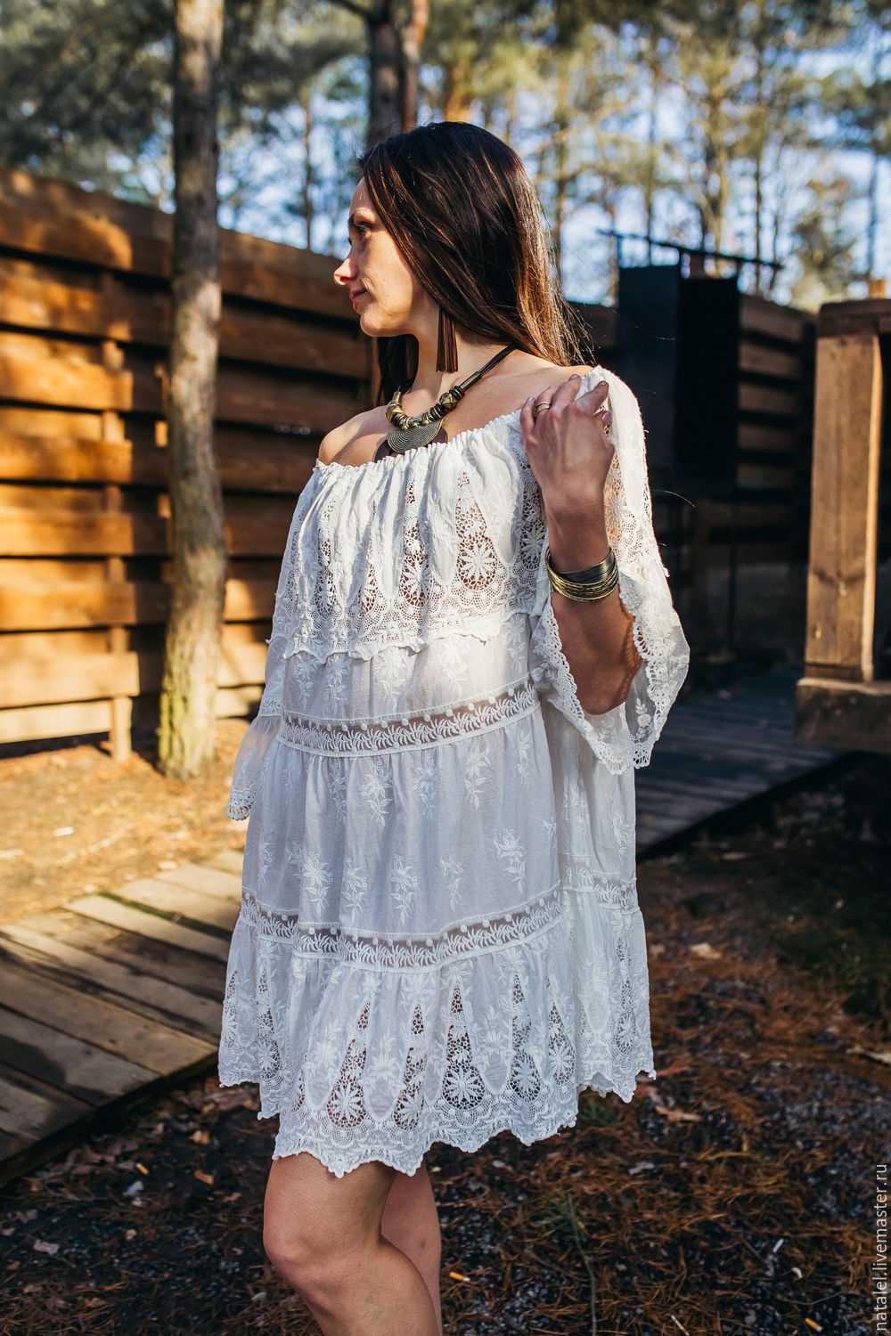 Легкое платье-туника кружевной вязки — must-have любого курортного отпуска. Преимущество такого фасона в его универсальности: одежду можно комбинировать со слитным или раздельным купальником, с легкой юбкой в бохо-стиле, со льняным брючным костюмом