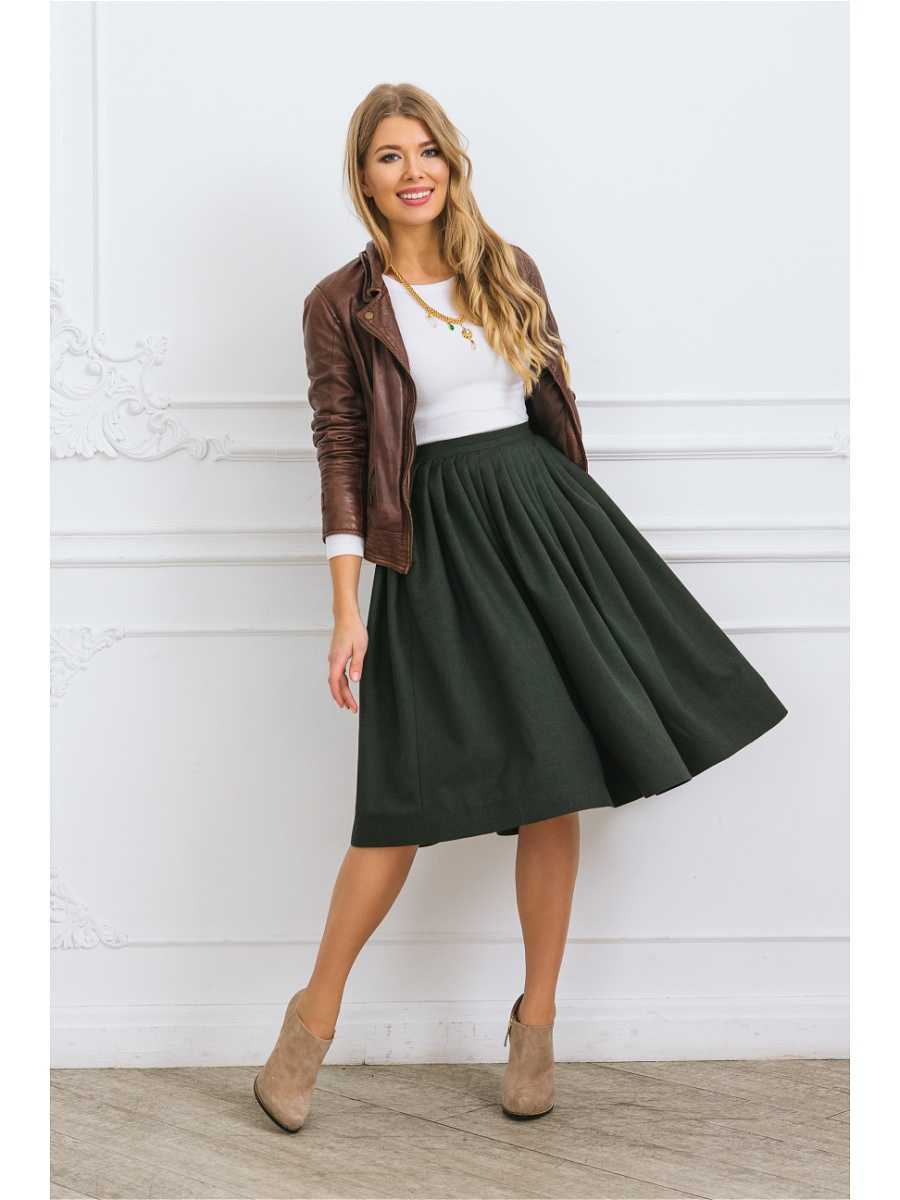 Юбки зелёного цвета подходят для воплощения луков в разных стилевых направлениях. Их можно сочетать с яркими или спокойными цветовыми решениями. Выбор остаётся только за вами.