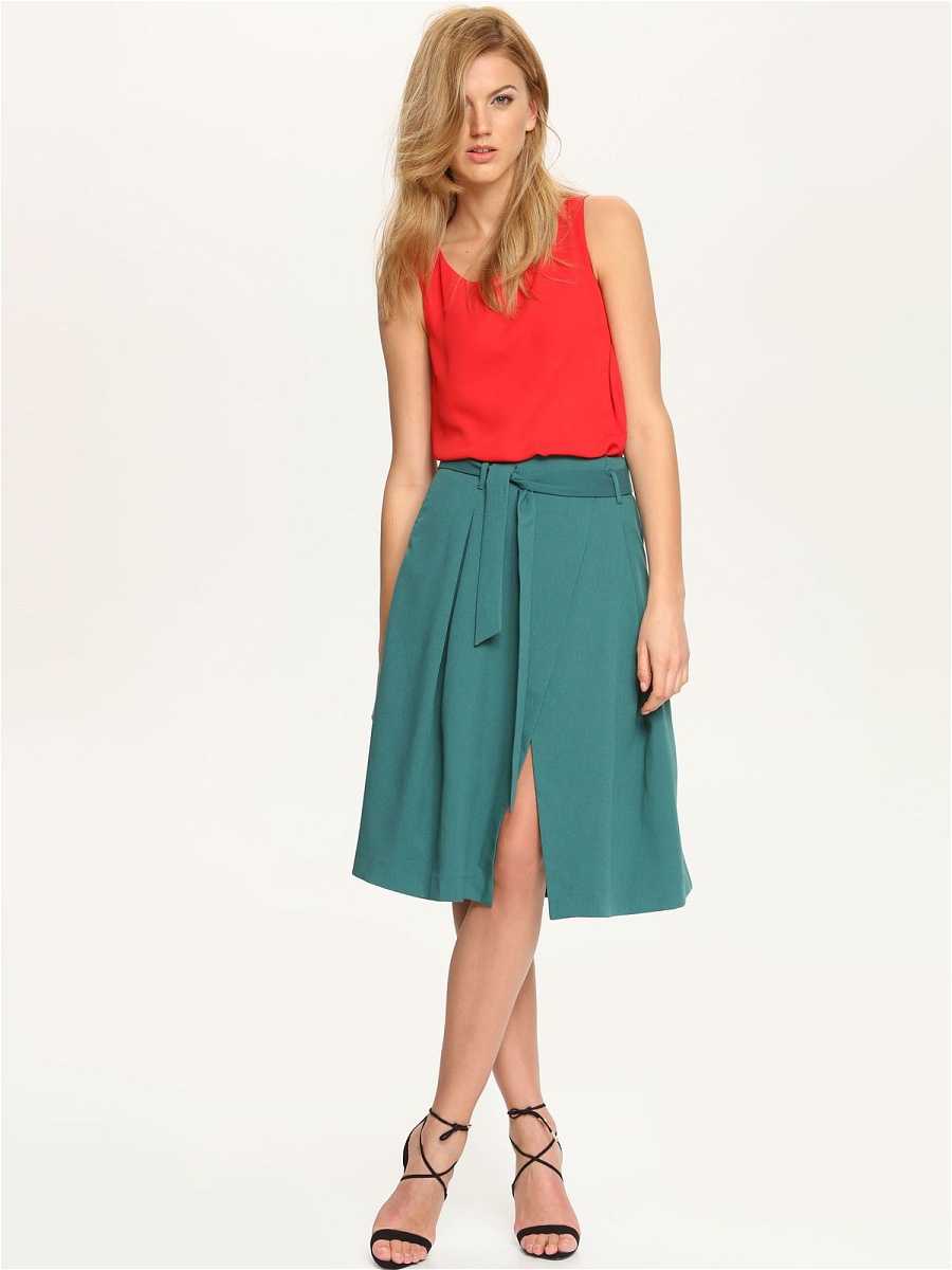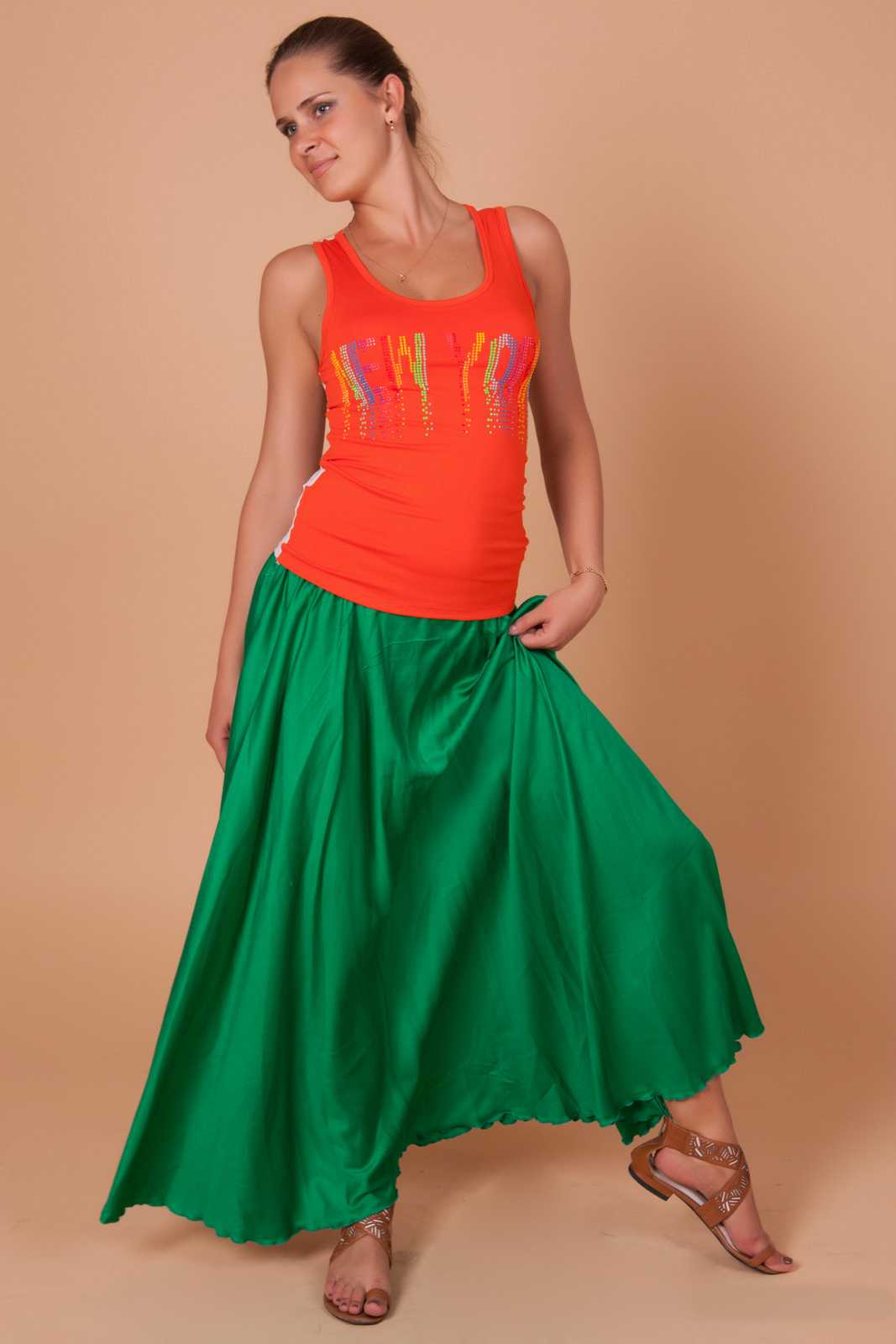 Комплект зеленой юбки и блестящей майки-топа будет смотреться просто отлично. Также к юбке зеленого оттенка прекрасно подойдет верх темно-бордового цвета.