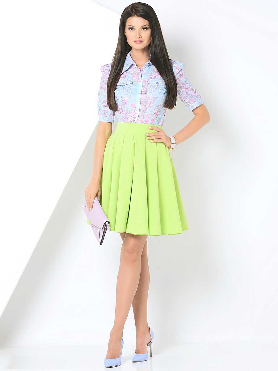 Классический зеленый состоит из желтого и синего тонов. Поэтому верх яркого солнечного колора идеально сочетается с юбками всех оттенков зелени.