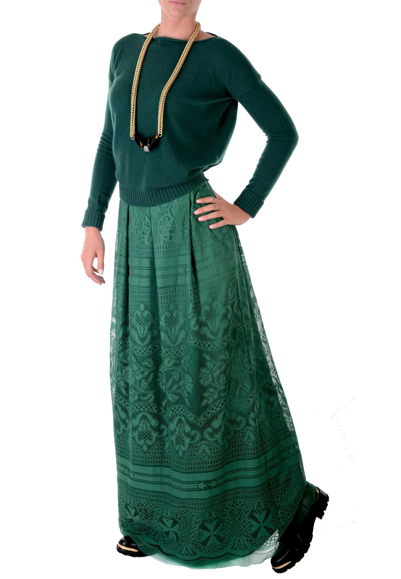 Используя зеленую юбку как составную часть вечернего наряда, помните, что в этом случае она должна быть главным акцентом вашего образа. Остальные детали должны лишь подчеркивать ее роскошность.