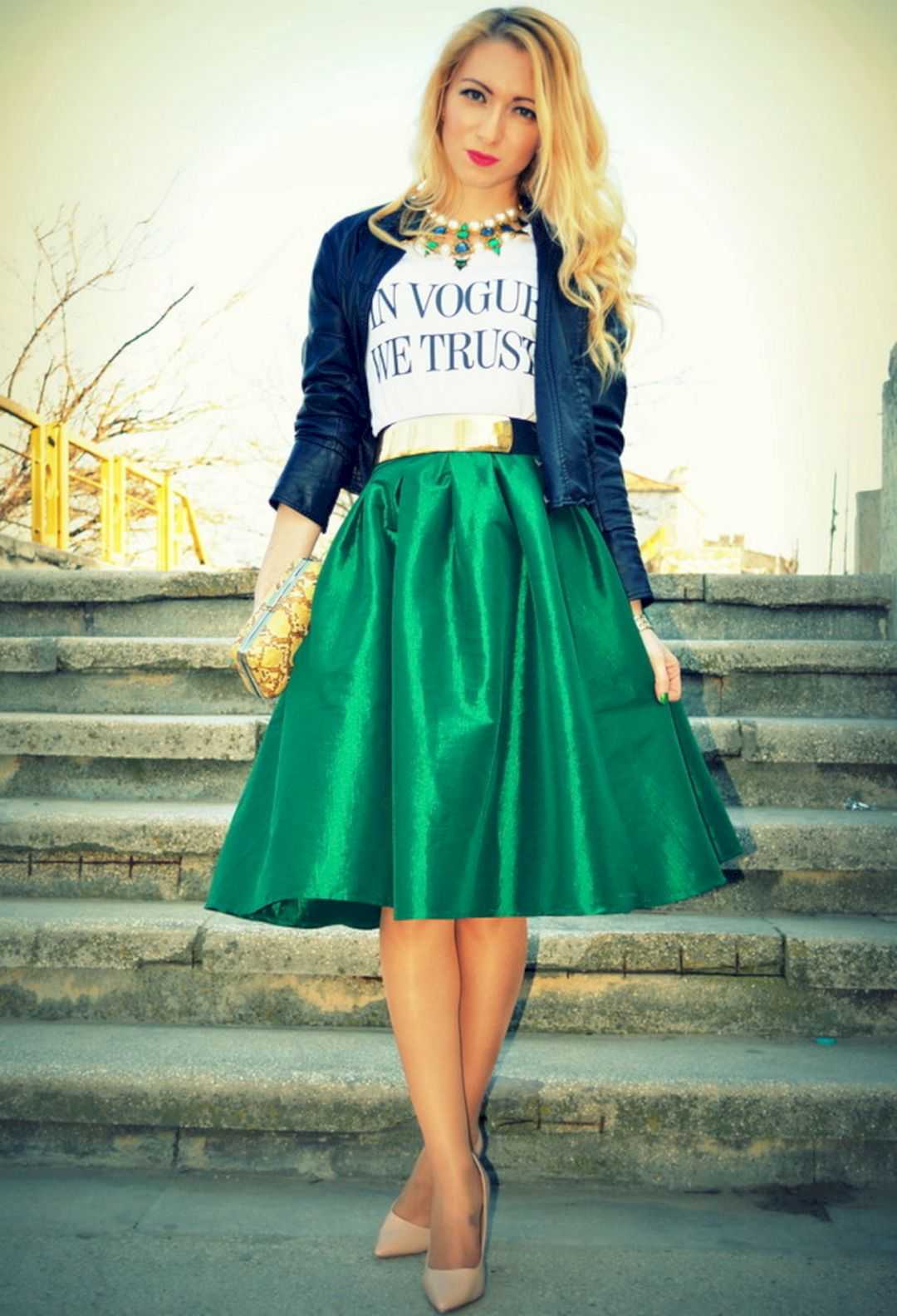 Каждая модница должна иметь в своём гардеробе юбки зелёного цвета, ведь они помогут создать много стильных и непревзойдённых летних образов. Зелёный цвет является многогранным, ведь предлагает большое количество тонов, каждый из которых помогает создать новое и стильное сочетание.