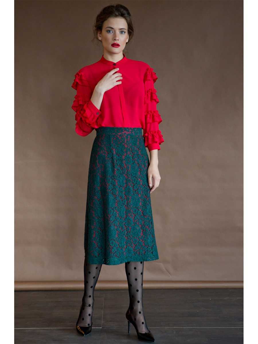 С зеленой юбкой можно бесконечно экспериментировать, что добавит Вашему образу оригинальности, индивидуальности. С холодными светлыми нюансами зеленого сочетается красно-коралловый, с теплыми тонами, наоборот, яркие тона красного цвета. В таком сочетании Вы никогда не останетесь без внимания, все взоры будут обращены только в Вашу сторону.