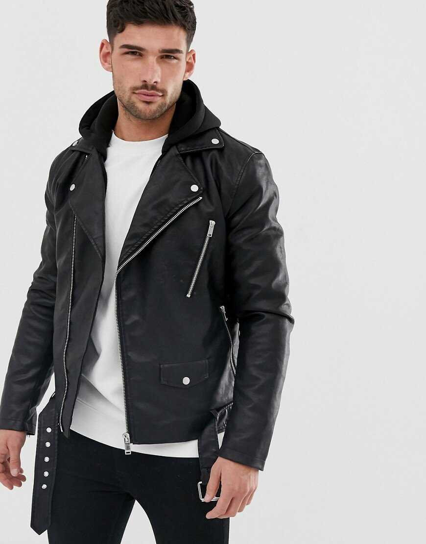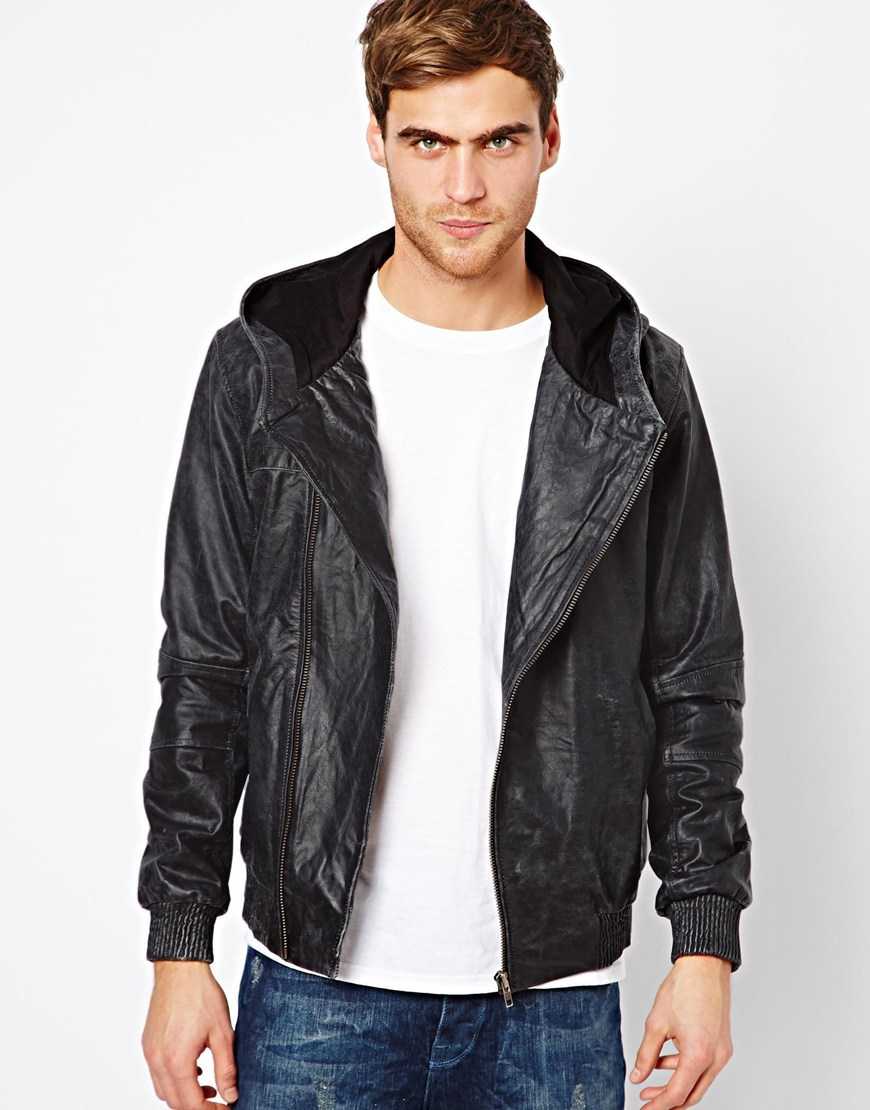Куртка из кожи, имеющая капюшон, снова становится популярной среди мужчин. Такая модель относится к спортивному стилю и хорошо смотрится, если надеть кеды и кроссовки. Мужскую курточку с капюшоном можно носить зимой, если она имеет меховую подкладку. Классическую модель черного цвета сочетают с денимом такого же оттенка, а винтажный коричневый цвет подойдет к синим джинсам.