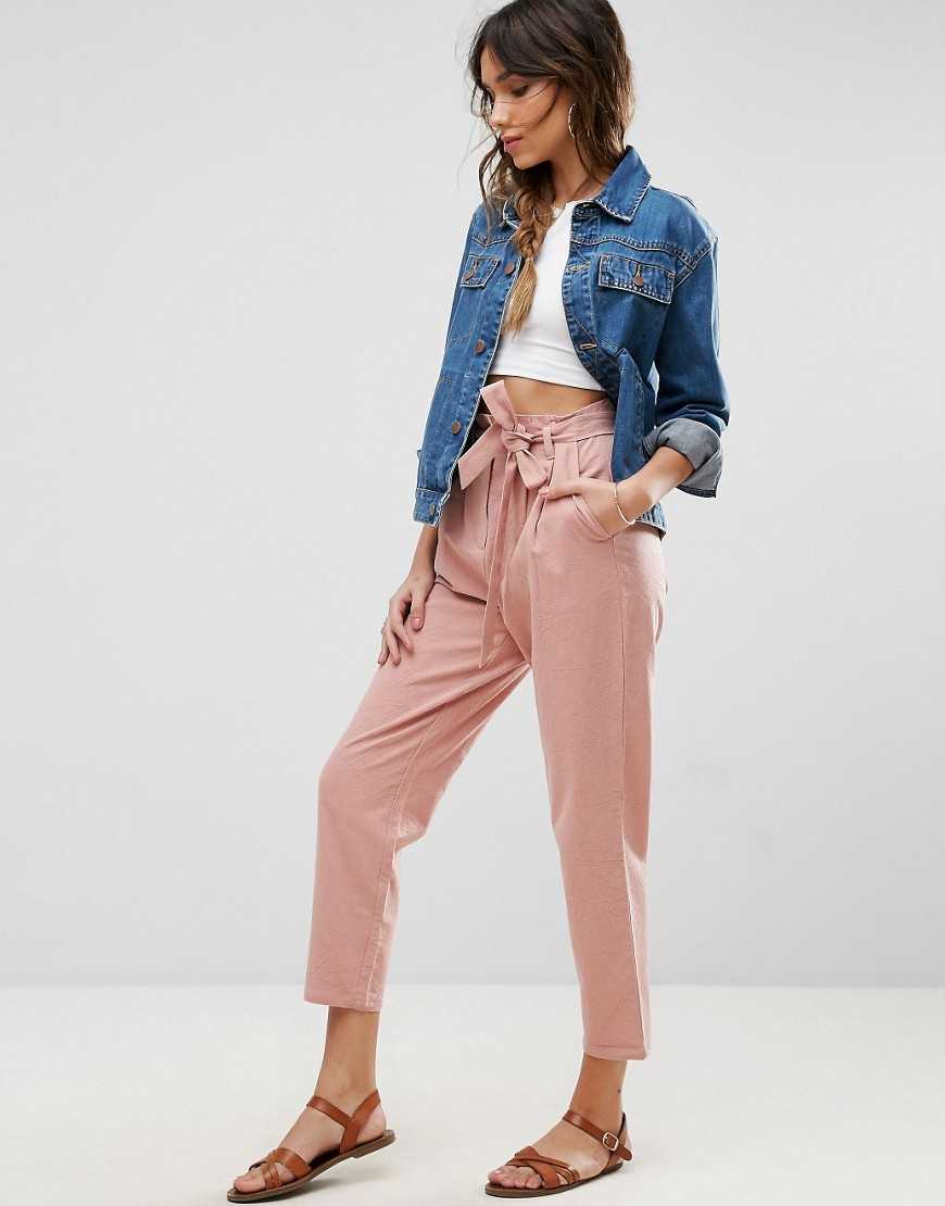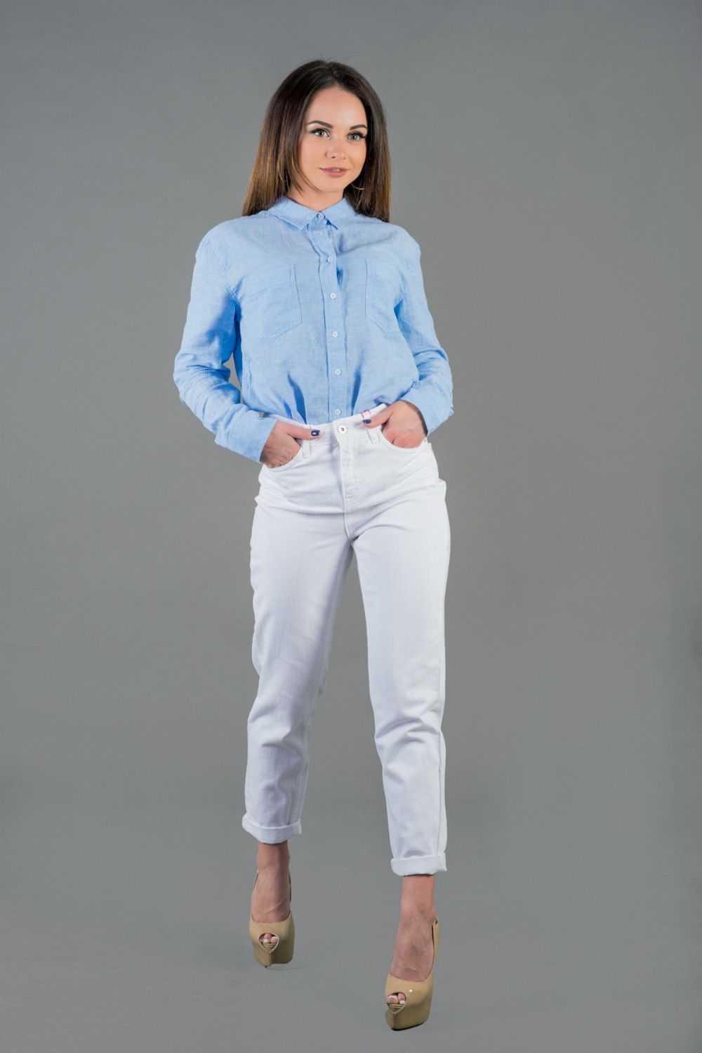 Так как такие штаны обычно шьются из натуральных тканей, их стоит сочетать с верхом из аналогичного материала. Синтетика будет не уместна.