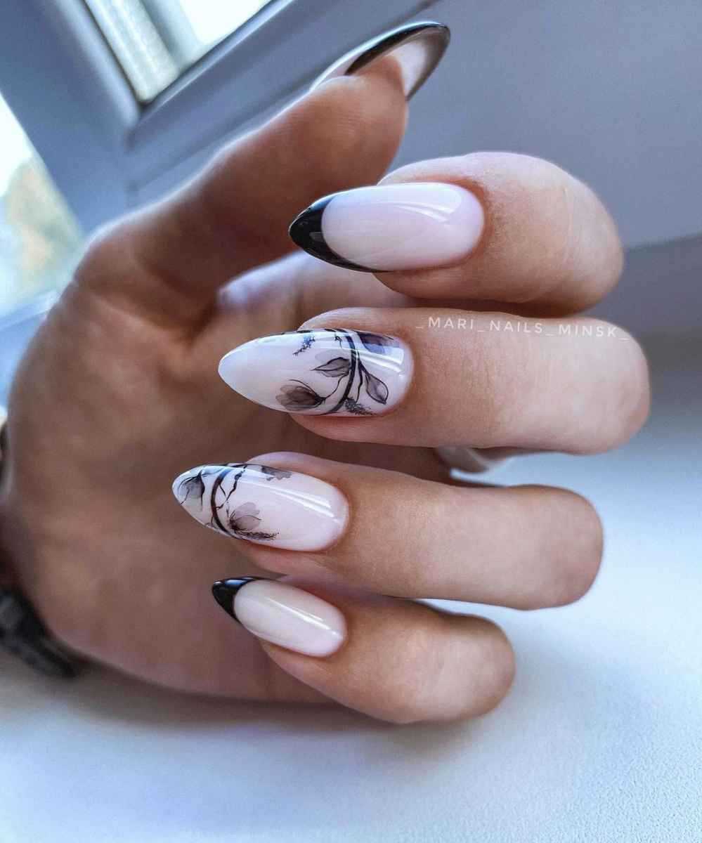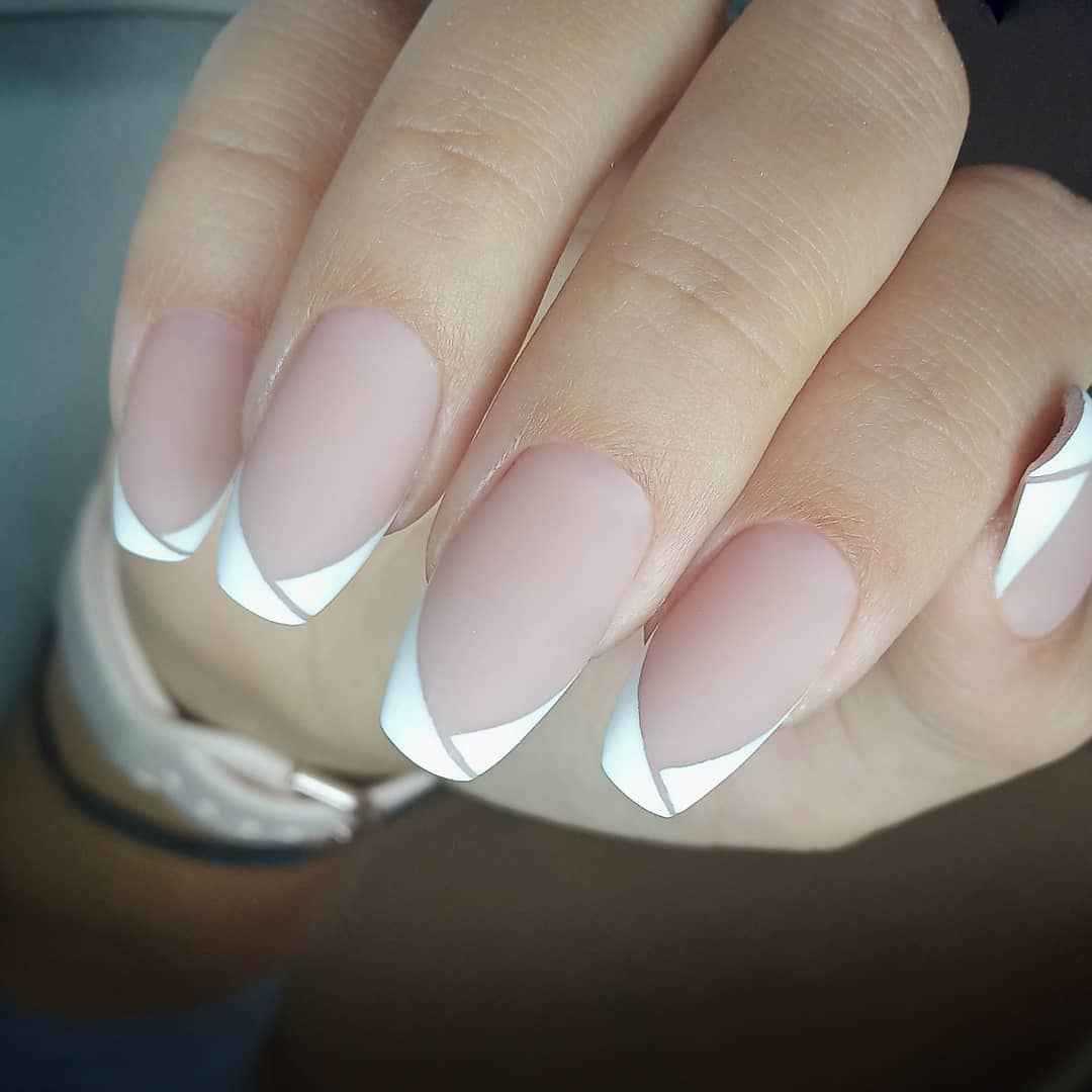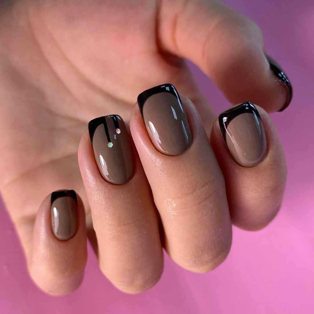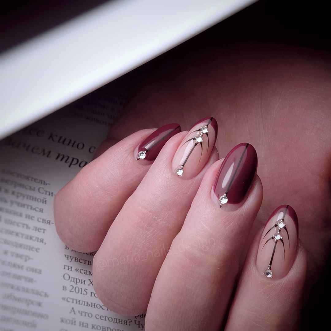 Классический французский маникюр осенью и зимой 2020-2021 представлен не только стандартным белым полумесяцем. Часто можно встретить более яркие идеи оформления кончика ногтя, например, в черных, красных, бордовых, синих, розовых, оранжевых тонах. Классический белый полумесяц чаще всего же дополняется популярными техниками. Например, френч на одном ногте, а остальные оформлены глиттером и белым лаком. На одной руке часто сочетают сразу два цвета френча, к примеру, черный и белый, серебряный и голубой и так далее. Эксперименты просто бесконечны.